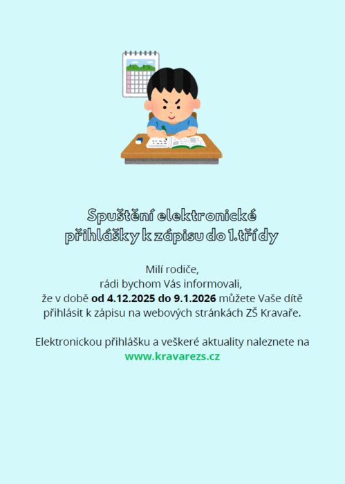 Spuštění elektronické přihlášky bude 4. 12. 2025 do 9. 1. 2026 zde pod odkazem.